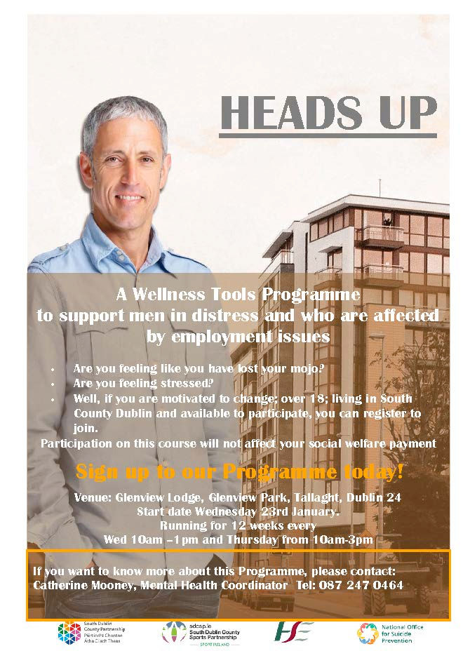 I've also included information on 'Heads Up' Programme for Men aged 18 and over as well as a Mindfulness Course which is being run by Threshold and SDCC.